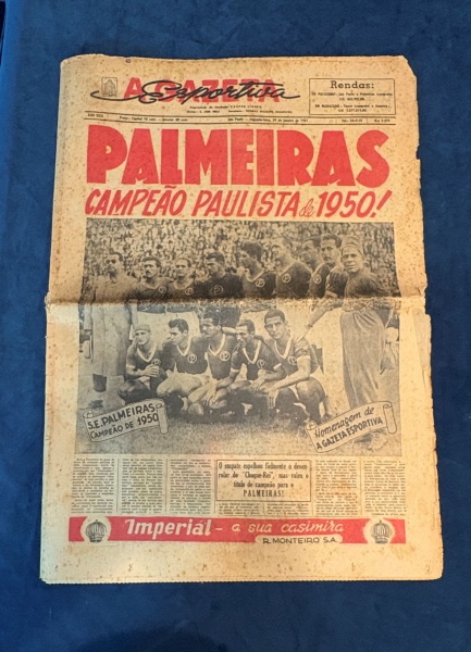 JORNAL - A Gazeta Esportiva - 29 de janeiro de 1951 - PALMEIRAS CAMPEÃO PAULISTA DE 1950