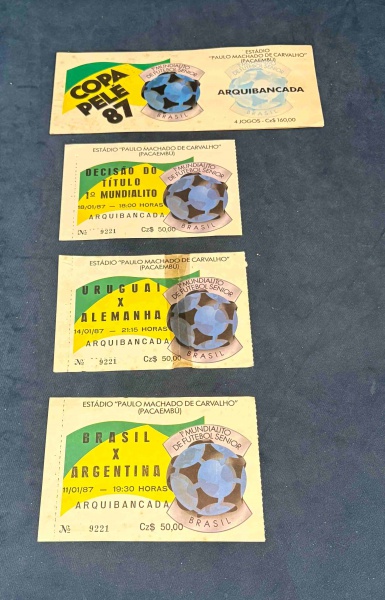 Lote com "capa" mais 3 ingressos do Primeiro Mundialito de Futebol Senior Copa Pelé, ano 1987. O Mundialito foi idealizado por Luciano do ...